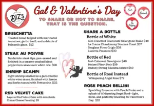 Gals & Vals, this one’s for you! Friday and Saturday night we’re serving up a special menu made for celebrating… and yes, our full regular