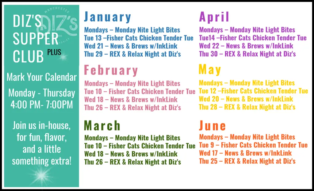 Keep an eye on our Social Media pages for details and for all upcoming events! For Details as Diz’s Events draw near, check out: |