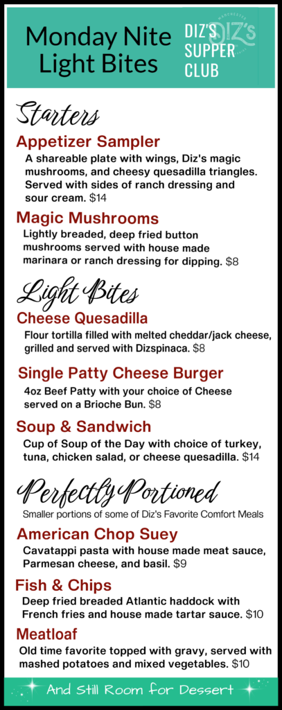 Introducing Monday Nite Light Bites, our new early-week, in-house special: